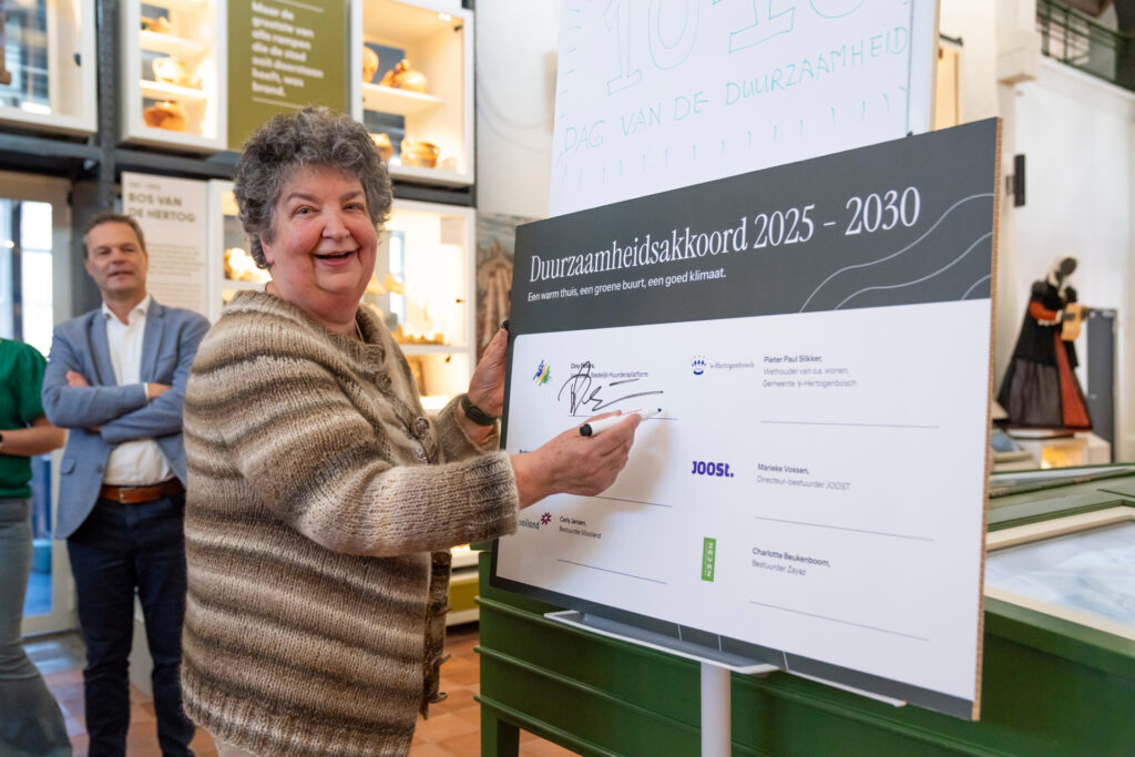 Om dit te bereiken heeft de gemeente ’s-Hertogenbosch samen met huurders, het Stedelijk Huurdersplatform, én woningcorporaties BrabantWonen, JOOST, Mooiland en Zayaz een nieuw Duurzaamheidsakkoord ondertekend. Wethouder Pieter Paul Slikker: “Met dit akkoord zetten we de toekomst én onze huurders centraal. We betrekken bewoners actief bij veranderingen in hun buurt. We nemen onze verantwoordelijkheid voor het klimaat. We zorgen voor woningen die warm zijn in de winter, koel in de zomer, zonder tocht en vocht, terwijl de energierekening betaalbaar blijft.”